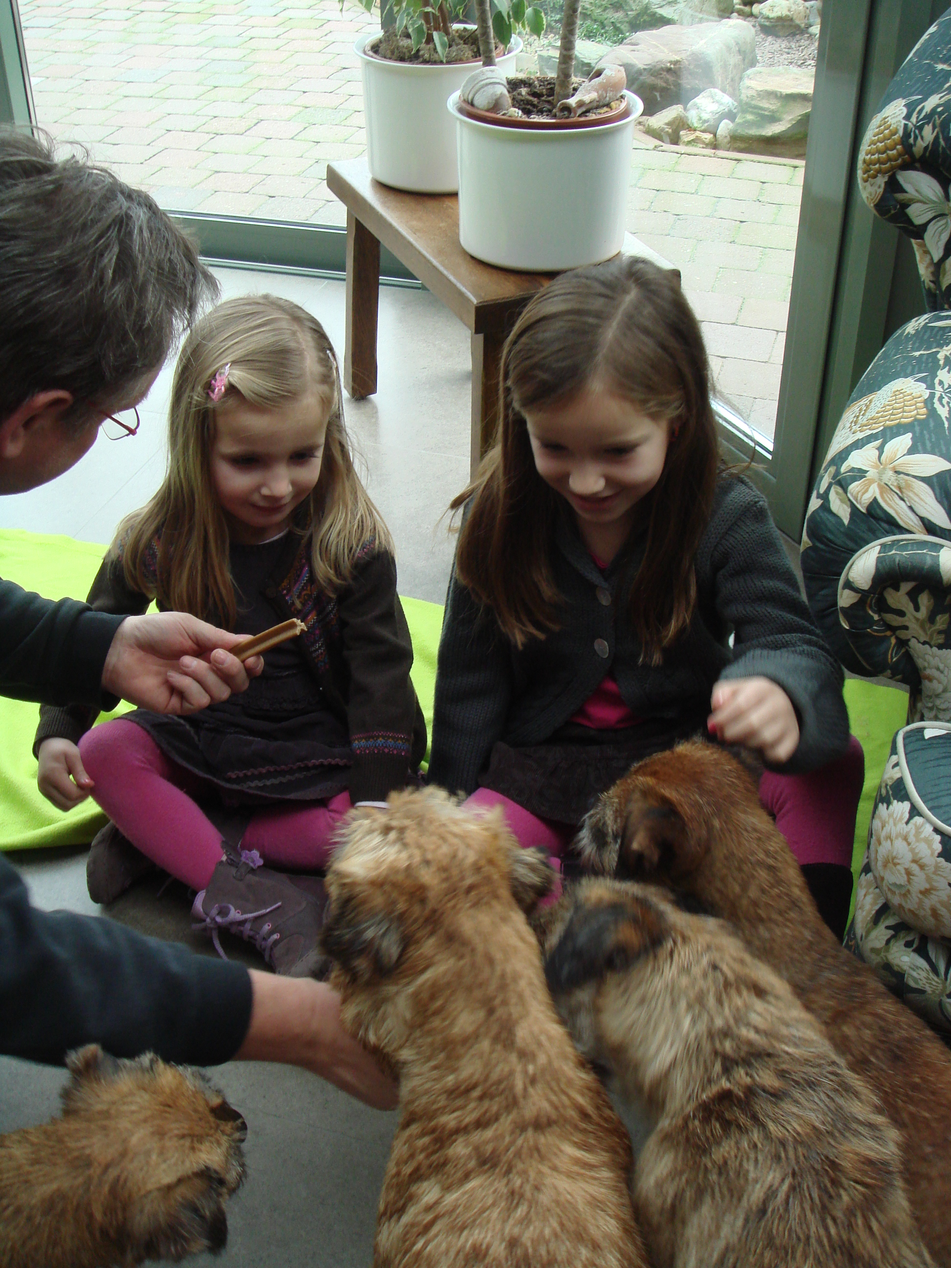 Hierna gingen we op bezoek bij de honden van Diane en Martin. De ultieme test. Hoe zouden de meiden reageren en zou er een klik zijn met de honden? Zoals je al kunt raden, was het meteen een succes. De meiden mochten de honden aaien, snoepjes geven en zelfs een kleine wandeling maken.