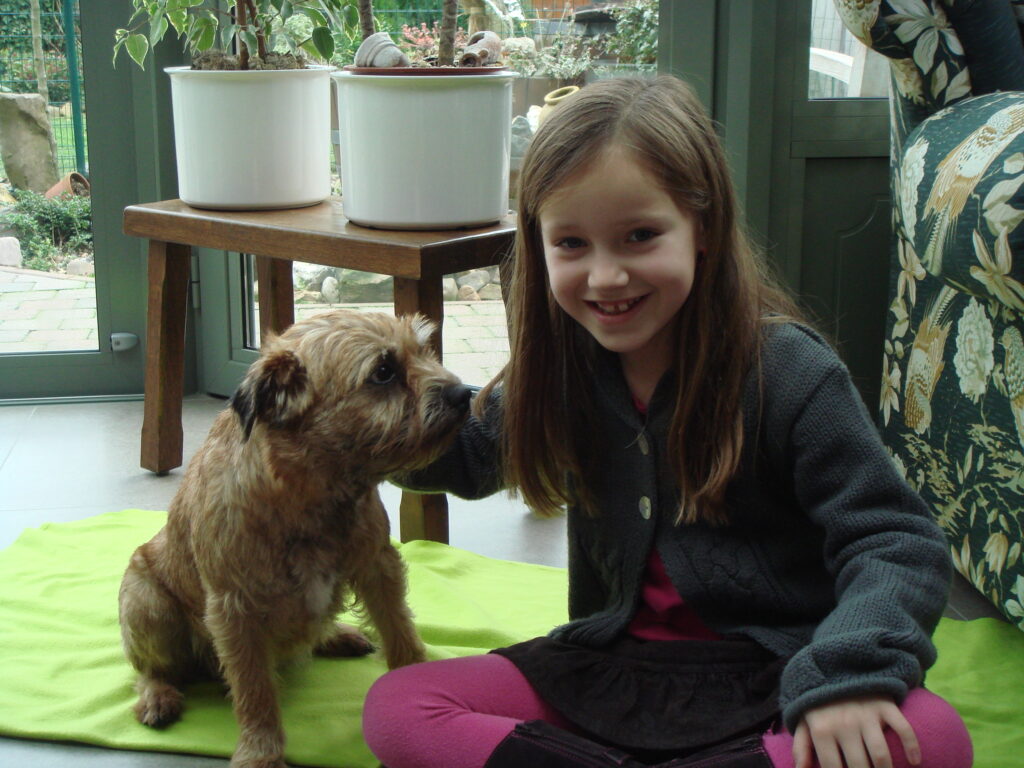Daartegen kon ik weinig inbrengen en zocht daardoor een, voor ons, geschikt ras. Ik wilde namelijk graag een kleinere hond met veel karakter. Zoals een grote hond, maar dan in het formaat dat past bij twee kleine kinderen. Zo kwam ik terecht bij het ras Border Terrier.